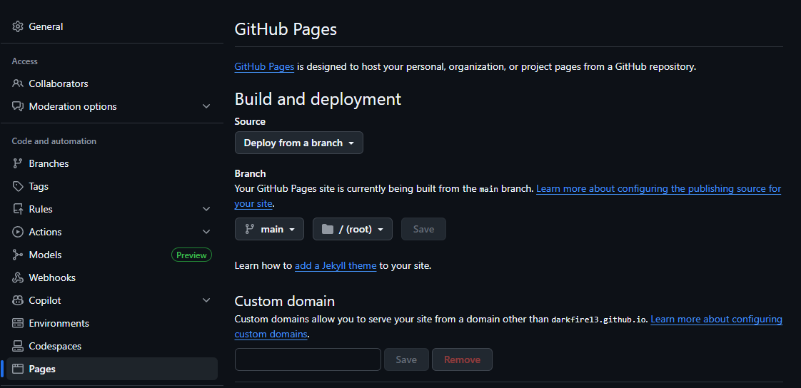 - В этом же репозитории зайди в Settings → Pages и в поле Custom domain укажи hosting.cloudns.nz, затем сохрани.